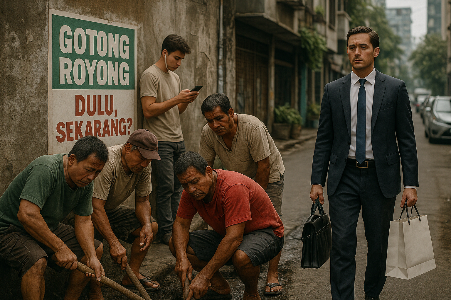Nilai gotong royong, meskipun masih dijunjung tinggi dalam retorika politik, menghadapi tantangan serius dalam praktik ekonomi Indonesia saat ini. Ketimpangan sosial, individualisme, dan krisis kepercayaan terhadap pemerintah menjadi faktor utama yang menghambat perwujudan semangat kebersamaan dalam kehidupan ekonomi masyarakat.